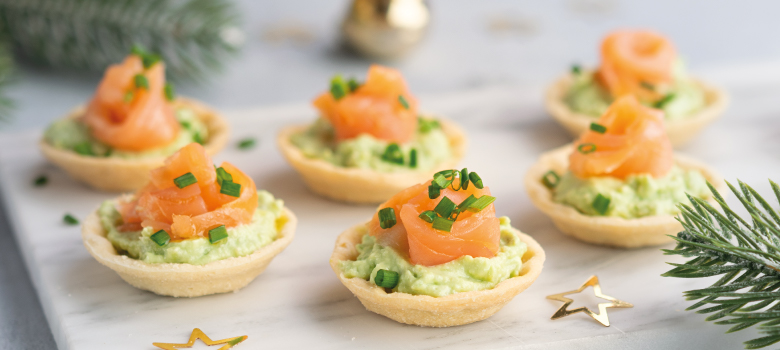 Γεμίζετε τα ταρτάκια με την κρέμα και γαρνίρετε με τον σολομό και το φρέσκο κρεμμύδι.