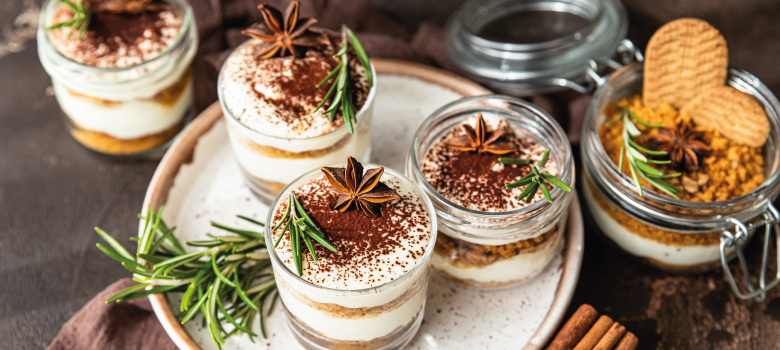 Βάζετε στα ποτηράκια τριμμένο μπισκότο, αμύγδαλο, κρέμα και επαναλαμβάνετε άλλη μία φορά.